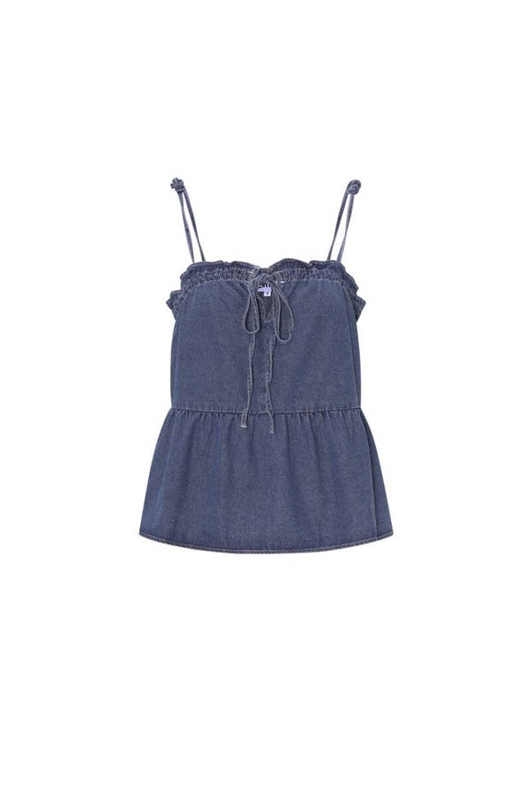 Geef je zomergarderobe een stoere en stijlvolle upgrade met dit trendy spijkertopje. Gemaakt van een stevige geweven denimstof, combineert dit casual topje moeiteloos comfort met flair. De effen kleur en de korte lengte maken het een veelzijdig item dat perfect past bij een high-waisted jeans, rok of short. Ideaal voor zonnige dagen, festivals of een casual city look!